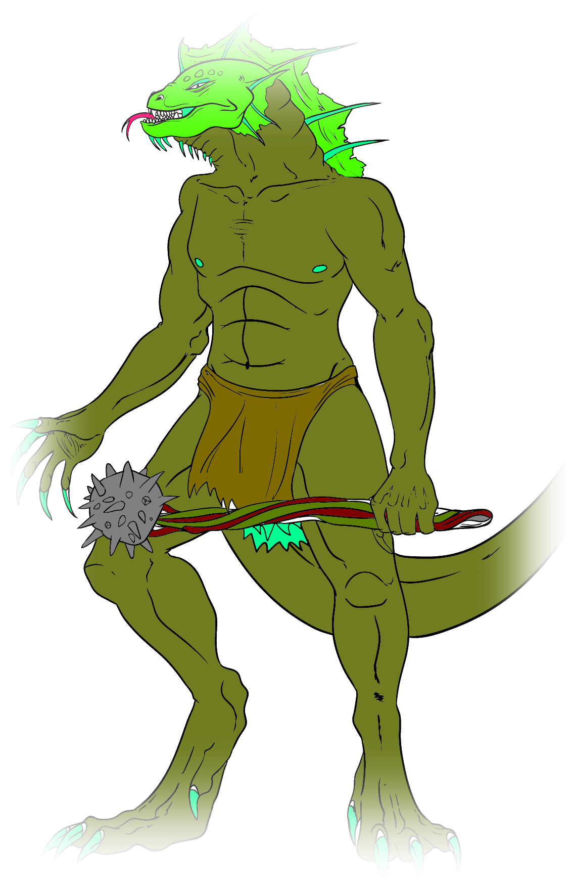 But of course, things can't be that simple, right? We can't just spend the morning in the bog collecting some froglings organs. No. No, a pair of lizardmen, who just might have been on their way to confer with their erstwhile frogling allies, have spotted you. And clearly, these lizardmen have seen the cut-open bodies of those small, no-longer-jumping amphibious ne'er-do-wells. They draw up just long enough to cast spears at about thirty feet distance, and are already charging forward even before those projectiles find or miss their marks.